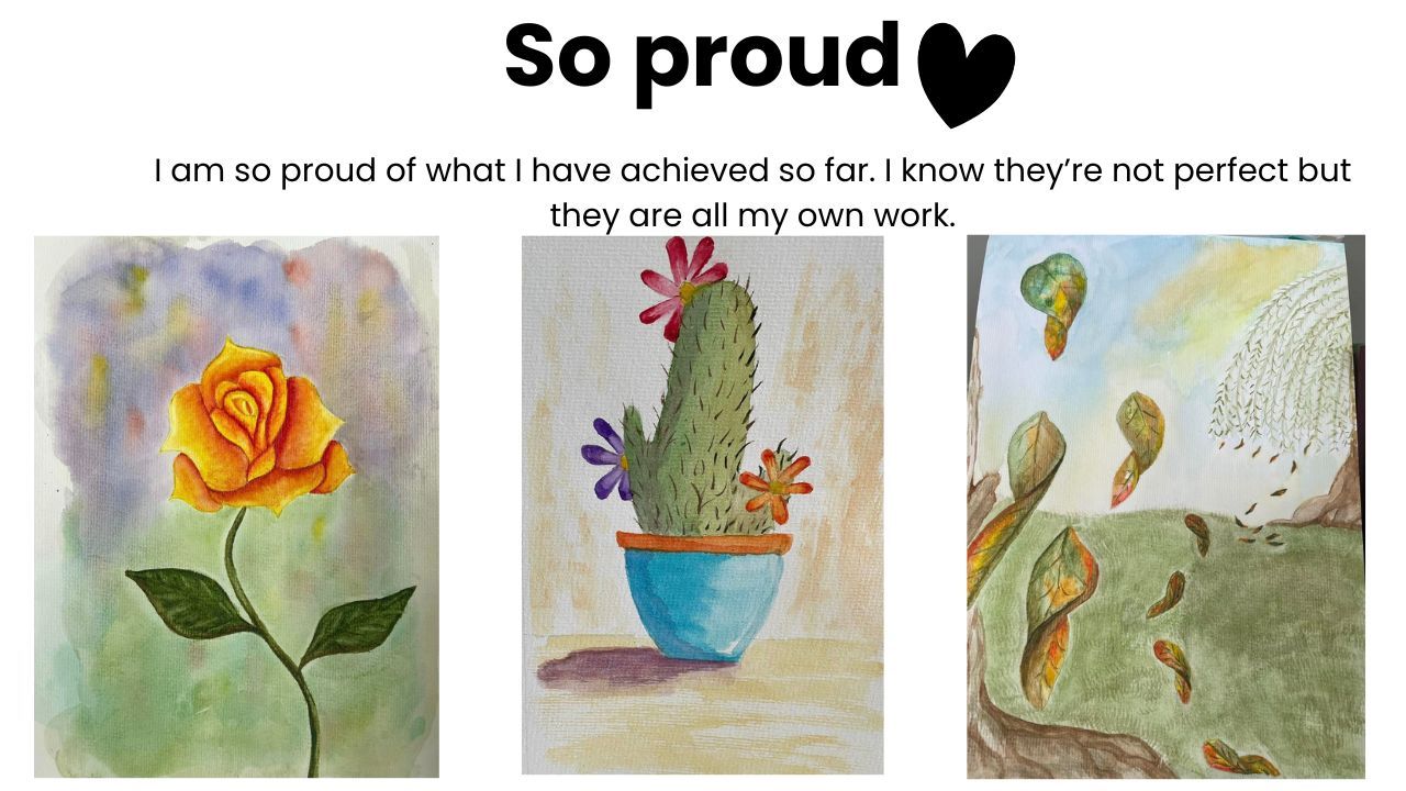 I'm here to guide you through the techniques and mindsets that you need to fully thrive as an artist. I believe that ‘Creativity is good for your soul’ and that every day should be a creative one! I PRIDE MYSELF on valuing the unique abilities everyone has to create their own watercolour journey. And I'm 100% here for that for you.